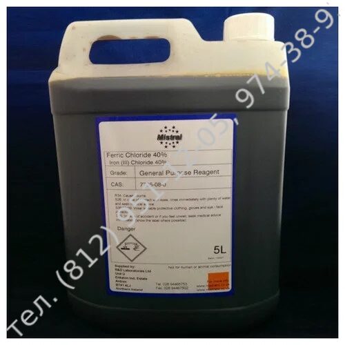 Чтобы купить Железо хлорное ( 40 % раствор ) оптом по цене 50 руб., свяжитесь с поставщиком. Компания поставщик — Лидер (ИП «Мхитарян Г. Л.») из города Санкт-Петербург. Минимальная сумма оптового заказа: 15000 руб. Доставка возможна самовывоз, транспортной компанией, автомобилем, курьером.