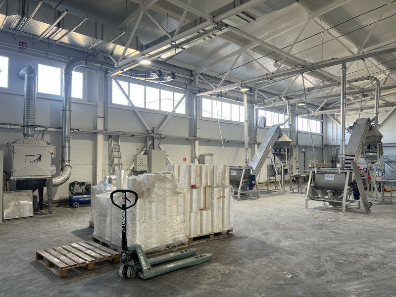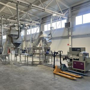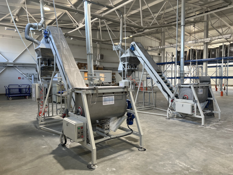 Оборудование: Растариватели биг-бегов (для подачи сырья в смесители), смесители вместимостью 300 л, конвеерные и транспортерные ленты, для подачи смеси в дозаторы, дозаторы 3-х поточные с высокой скоростью фасовки, запайщики пакетов (преимущественно дой-пак), станок для упаковки во вторичную пленку, оборудование для нанесения различных типов маркировок и стикерования.