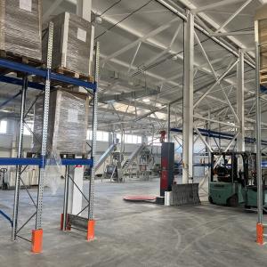Склад: 1000 кв. м., стеллажное хранение, присутствует штабелёр, вилочный погрузчик, палетообмотчик, рохли и двое транспортных ворот.