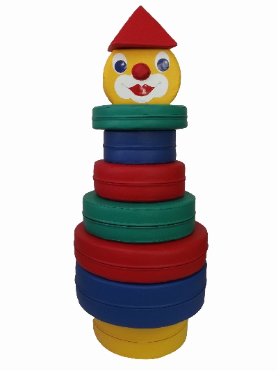 Напольный конструктор пирамида «Клоун» - состоит из 7 фигурных колец, 1 круга и 1 треугольника.