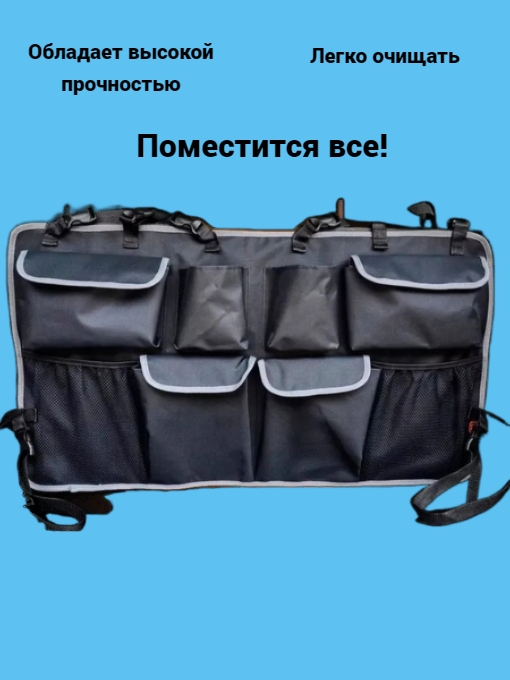 Органайзер на спинку заднего сиденья легко чистится, обладает высокой прочностью, износостойкостью и устойчивостью к температурным перепадам.