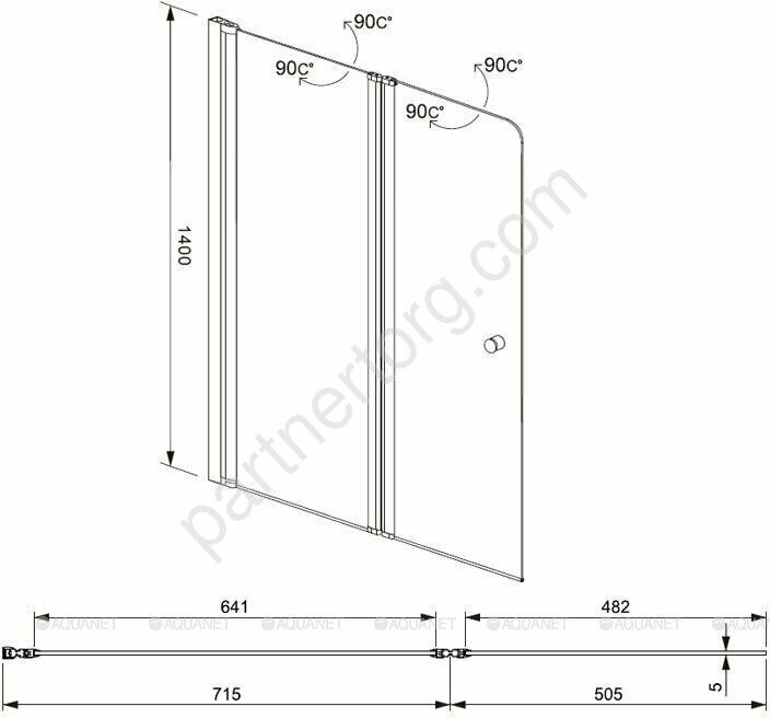 Размер: 122х140см. Профиль алюминий, хром. Стекло: прозрачное, 5мм.