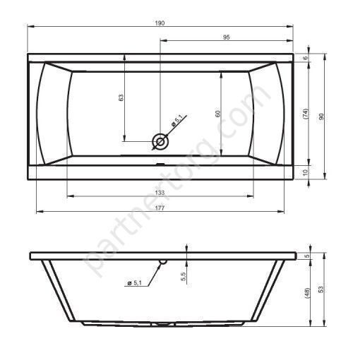Размер: 190х90 см. Глубина 52см. Объем 320 л. Цвет: белый. 100% акрил.