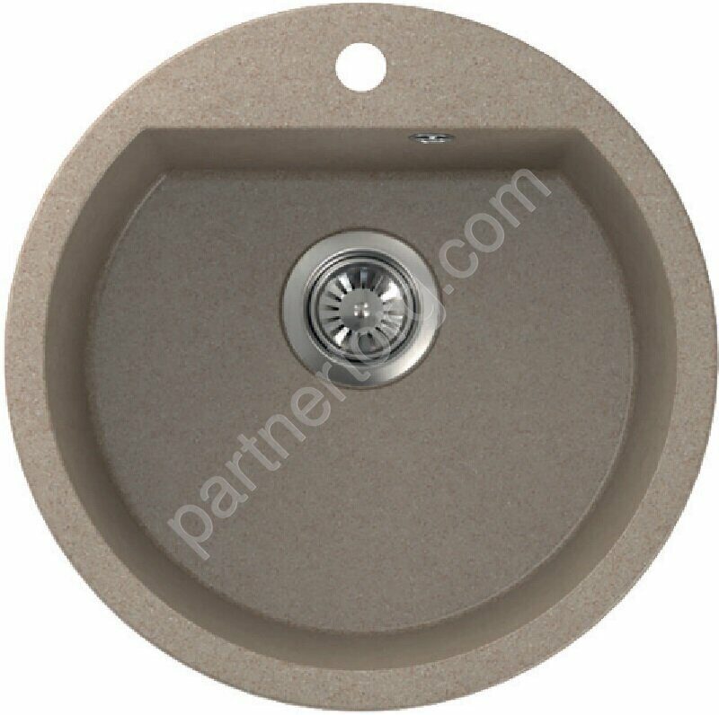 Размер мойки: Ø 51см. Размер чаши 44,5х38,5см. Глубина: 19см. Одинарный сифон в комплекте. Материал: 80% кварцевый наполнитель и 20% полимерное связующее. Доступные цвета: антрацит, искристый черный, латте, песочный, искристый серый, белый арктик, иней, дюна, искристый бетон.