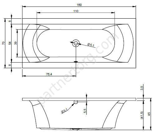 Размер: 160х70см. Глубина 45см. Объем 95 л. Цвет: белый. 100% акрил. Расположение сифона: правое/левое.