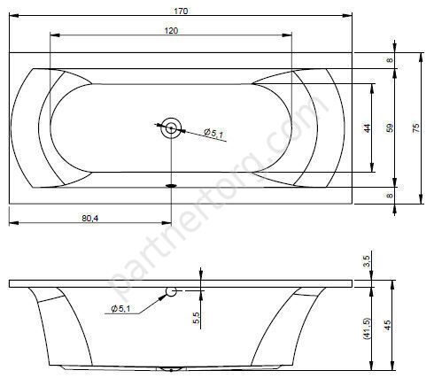 Размер: 170х75см. Глубина 45см. Объем 130 л. Цвет: белый. 100% акрил. Расположение сифона: правое/левое.