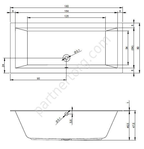 Размер: 180х80 см. Глубина 47,5 см. Объем 215 л. Цвет: белый. 100% акрил. С тонким бортом.