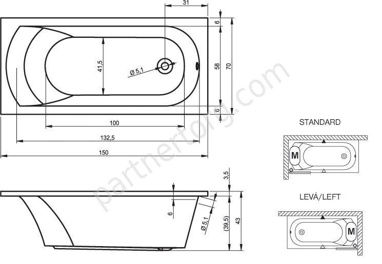 Размер: 150х70 см. Глубина 43 см. Объем 80 л. Цвет: белый. 100% акрил.