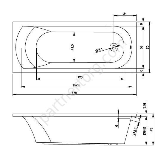 Размер: 170х70 см. Глубина 43 см. Объем 105 л. Цвет: белый. 100% акрил.