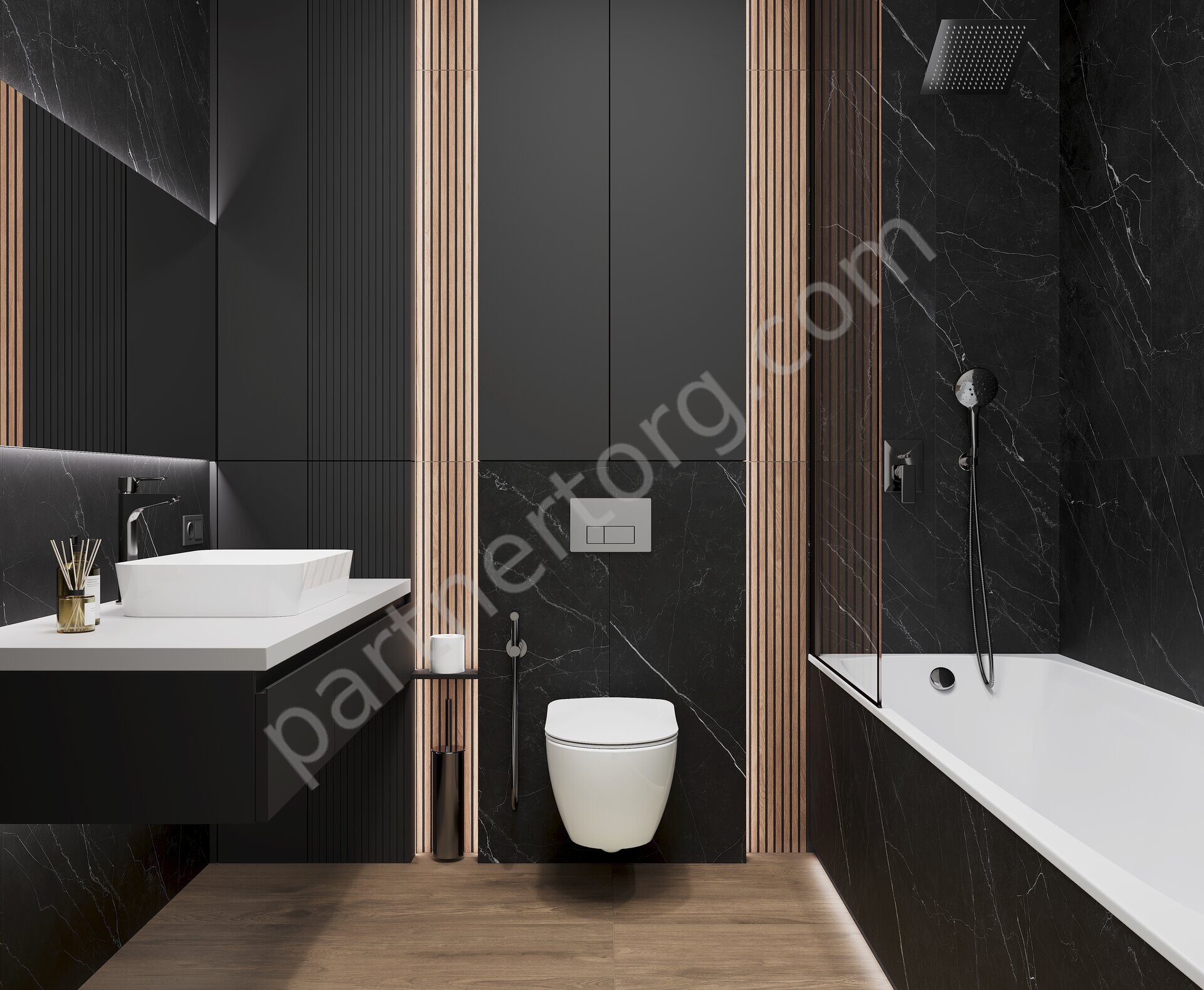 Размер: 59,5x119,1 см. Цвет: черный, под мрамор. Матовый, с эффектом карвинговых чернил. . Ректификат. Отпускается: кратно упаковке 1,44м2 /2 шт.