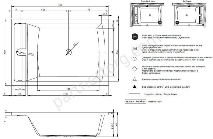 Размер: 190х130 см. Глубина 48 см. Объем 370 л. Цвет: белый. 100% акрил.
