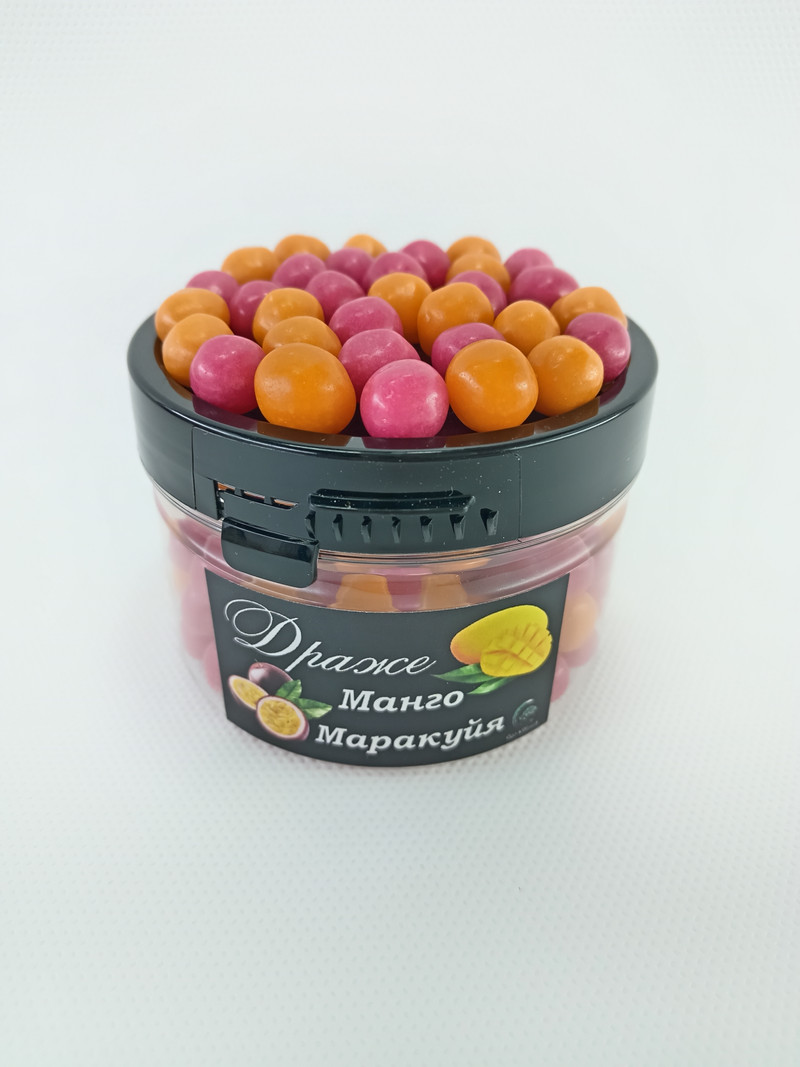 Ассорти драже со вкусом Манго и Маракуйя. В ПЭТ банке 80 грамм.