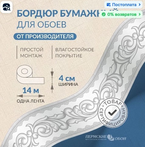Чтобы купить Бордюр Пермские обои Б 1104-7 оптом по цене 2500 руб., свяжитесь с поставщиком. Компания поставщик — ТД Пермские обои из города . Минимальная сумма оптового заказа: 10000 руб. Минимальная партия 50 шт. Доставка возможна самовывоз, транспортной компанией.