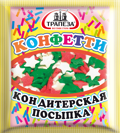 Кондитерские посыпки служат украшением для пирожных, кексов, тортов и прочих кондитерских изделий. Возможны разные формы и цвета «конфетти».