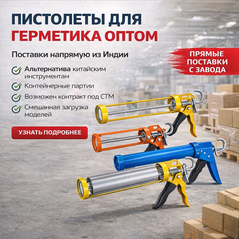 Предлагаем линейку профессиональных пистолетов для герметика (300-400 мл) для оптовых поставок в РФ и СНГ.