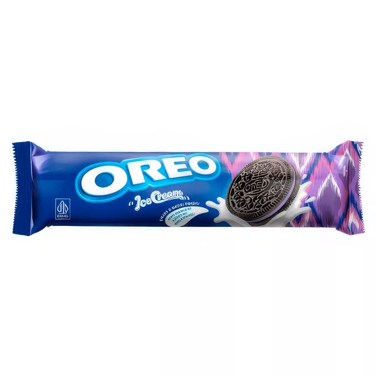 Представляем вашему вниманию изысканное лакомство из Индонезии - печенье OREO Blueberry Ice Cream, которое станет идеальным дополнением к вашему чаепитию. Этот уникальный продукт сочетает в себе вкус черничного мороженого и классического печенья OREO.