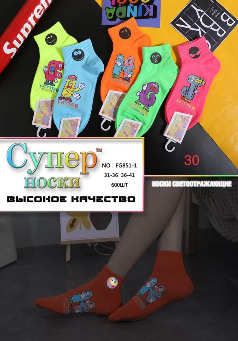 Чтобы купить Носки жен., светоотражающие р.31 — 36 36 — 41 NO: FG851 - 1 оптом по цене 30 руб., свяжитесь с поставщиком. Компания поставщик — Всё по 30 (ИП «Чернова Ю.Н») из города Краснодар (Краснодарский край). Минимальная сумма оптового заказа: 15000 руб. Минимальная партия 500 шт. Доставка возможна самовывоз, транспортной компанией, автомобилем. Способы оплаты: наличными, безналичная оплата, электронные деньги.