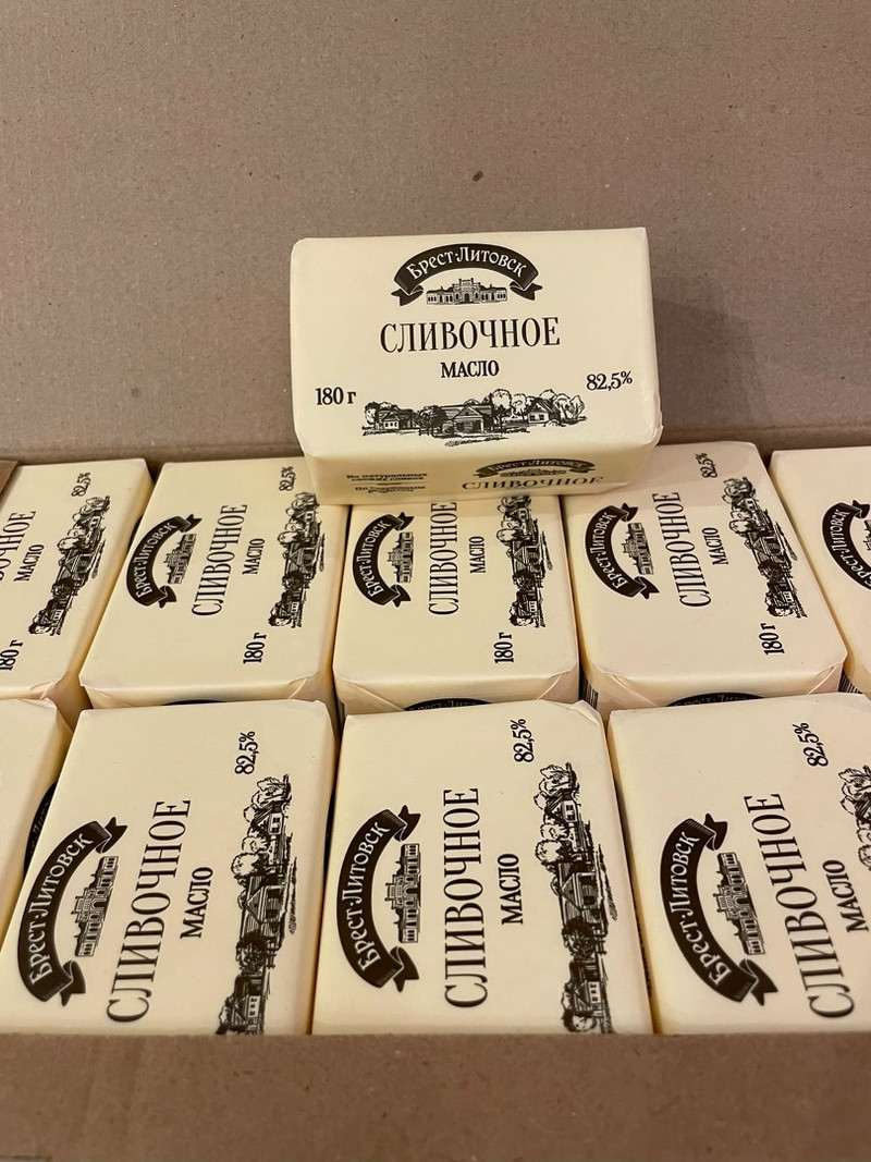 Mаcло сливoчнoе Брест-Литовcк 82,5% (180 г) оптом. В коpобке (20 шт). Срок годнoсти: вceгда свeжeе! Цена 85 р. шт.