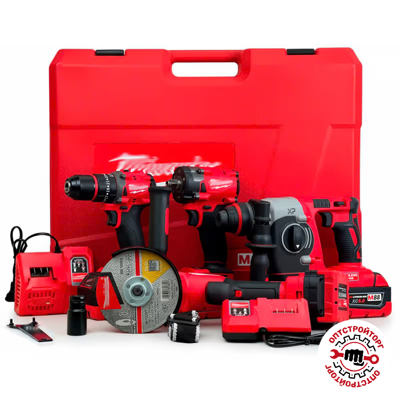 Набор 4в1: УШМ, гайковёрт, шуруповёрт, перфоратор
