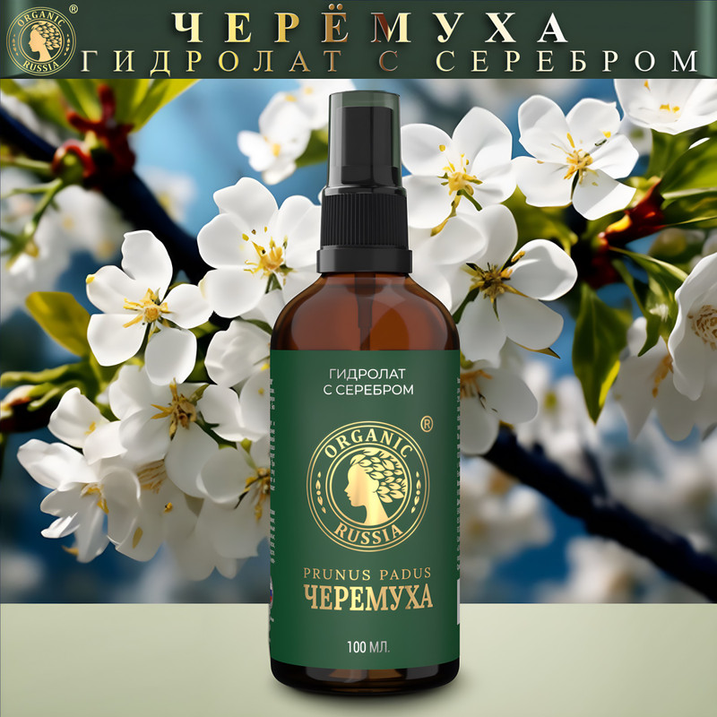 Серебро — природный антисептик усиливает действие гидролата и имеет свои собственные защитные и лечебные свойства. Улучшает проводимость нейронов в эпидермисе и клеточное питание кожи, усиливает действие гидролата и проникновение активных веществ в кожу. Микрочастицы серебра подавляют размножение микробов и грибка, борются с перхотью, а также работают на профилактику её появления. Гидролат черёмухи от ORGANIC RUSSIA с коллоидным серебром уменьшает воспаления проблемной кожи с акне: угревой сыпи, прыщей, розацеа, камедонов (чёрных точек). Наночастицы коллоидного серебра благотворно воздействует на кожу, волосы и корни волос.