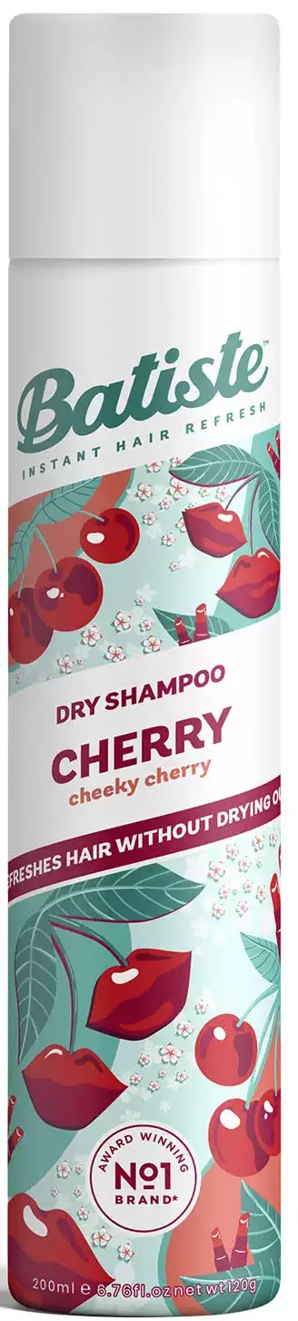 Сухой шампунь Batiste Cherry - это оригинальный шампунь с ягодным ароматом вишни для тех, кто любит сладкий вкус спелой вишни. Эта с веселым дизайном упаковки в виде вишенок будет стильным аксессуаром на вашем туалетном столике. Это настойщий помощник для каждой девушки, чтобы быстро освежить волосы без мытья. Сухой шампунь Batiste быстро очищает и освежает волосы. Сухой шампунь устраняет жирность корней, придавая скучным и безжизненным волосам необходимый блеск, без использования воды. Быстро освежает и повышает силу волос, придает телу волоса и текстуру и оставляет ощущение чистоты и свежести. Сухой шампунь идеален для использования, когда у вас нет времени мыть голову обычным шампунем. Сухой шампунь быстро и эффективно абсорбирует грязь и жир, тем самым очищая волосы.