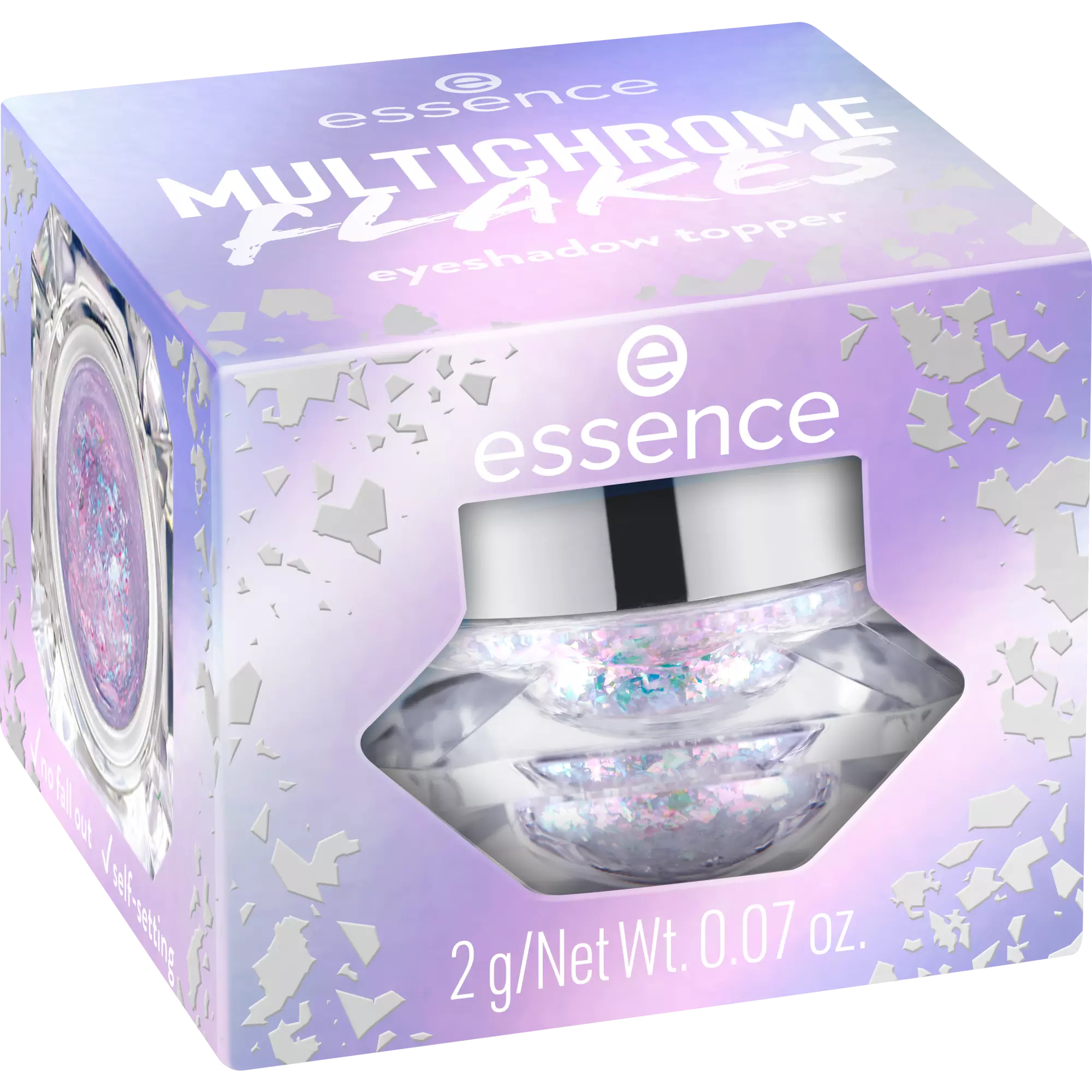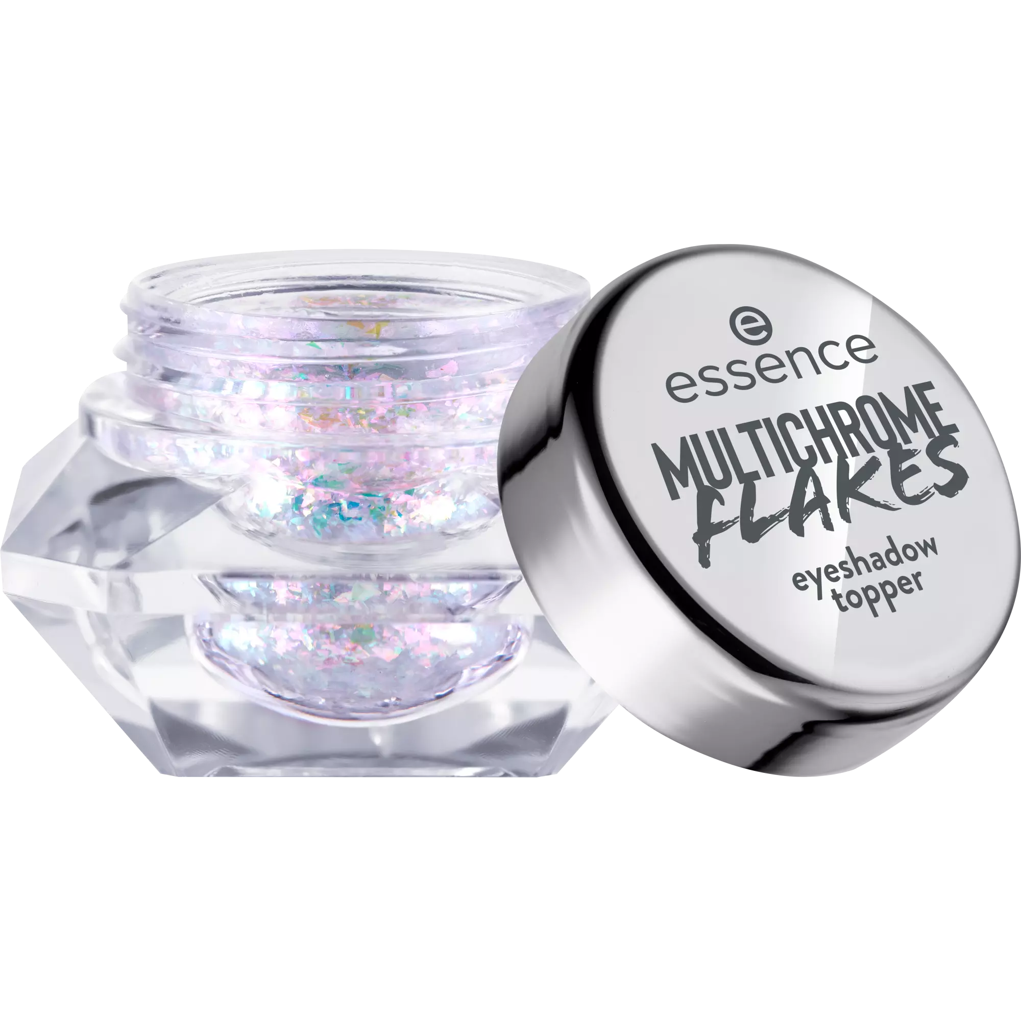 Легкая формула на водной основе с многоцветными частицами эссенции MULTICHROME FLAKES eyeshadow topper создает эффектный макияж глаз. Универсальное средство можно использовать как тени для век или как топпер, оно добавит ультра-блестящие блики любому образу. Топпер для теней для век высыхает самостоятельно, слегка охлаждает и поставляется в ромбовидной баночке.