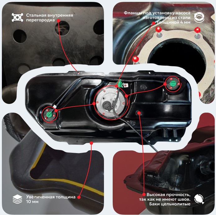 Мы дистрибьюторы в России завода легковых топливных баков Oto Santral (Турция), так же имеем свое производство топливных баков из пластика, баки услиенны и не имеют швов. Есть возможность изготовления под заказ.