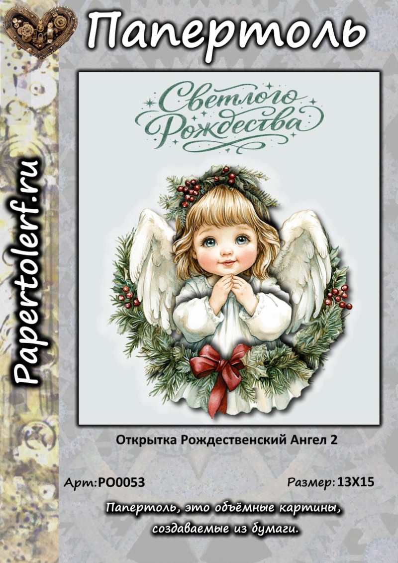 - Папертоль «Рождествеский ангел 4», р.12*14, арт. РР0383;