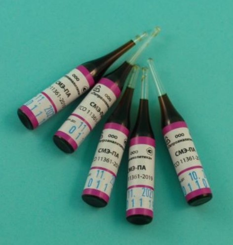 Стандартный образец массовой доли сероводорода, метилмеркаптана и этилмеркаптана в нефти (СО СМЭ-ПА, ГСО , МСО 2237:2020) предназначен для аттестации методик измерений и контроля точности результатов измерений массовой доли сероводорода, метилмеркаптана и этилмеркаптана в нефти, газовых конденсатах и легких углеводородных фракциях нефти по ГОСТ Р 50802, ГОСТ 33690 и ГОСТ 32918.