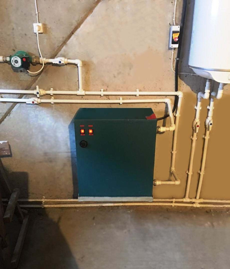Электроводонагреватель представляет собой корпус со сварной конструкцией из водопроводных труб, в которую установлен блок ТЭН. Поток воды, проходя через водопроводную систему водонагревателя и блок ТЭН, нагревается до заданной температуры.