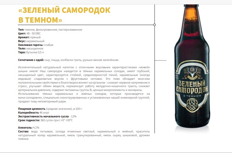 Исключительный натуральный напиток с отличными вкусовыми характеристиками “живой” шишки хмеля! Наш самородок находится с темных карамельных солодах, имеет глубокий, насыщенный цвет, характеризуется стойкой, среднезернистой пеной, карамельным (иногда медовым) сладковатым вкусом с фруктовыми нотками. Это пиво обладает многими положительными свойствами и благотворно влияет на организм — снимает нервное напряжение и стресс, улучшает обмен веществ, нормализует работу желудочно-кишечного тракта, снижает артериальное давление, содержит витамины группы В, ценные микроэлементы и минералы. Использование темных карамельных и жженых солодов, которые производятся на мини-солодовнях, специально сконструированных и установленных нашей инженерной группой, придают пиву неповторимый шарм.