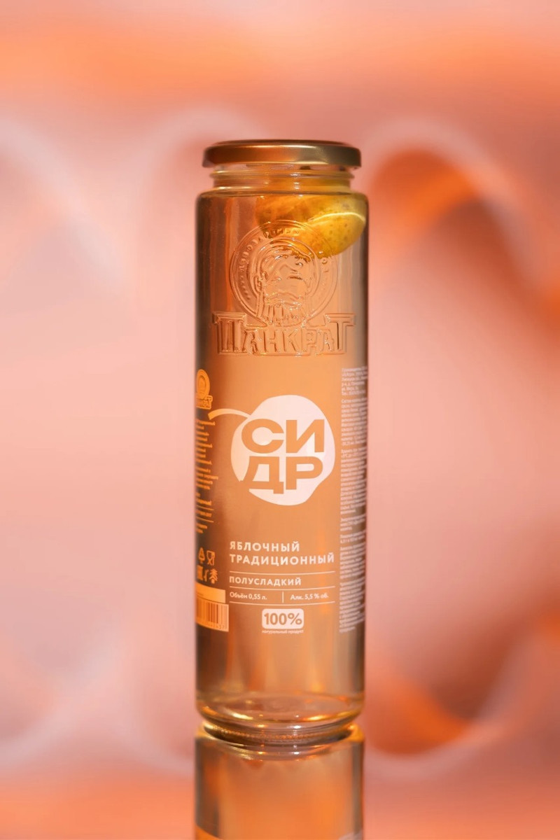 Особое внимание требует новинка Пивоваренного завода “Панкрат” — сидр “Полусладкий”. Особенностью этого сидра является яблоко внутри каждой баночки. Эта изюминка дает возможность прикоснуться к обворожительной живой природе черноземного края. Для производства “Полусладкого” сидра мы используем особые сорта яблок, выращенные и собранные вручную на собственных фруктовых плантациях.