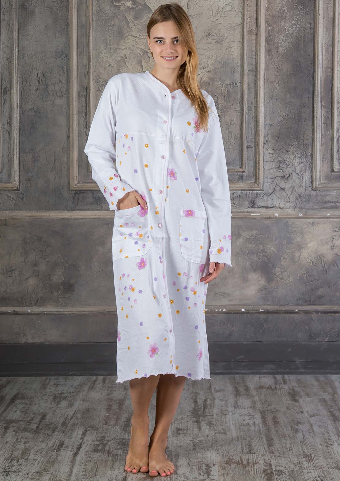 Длинный хлопковый халат на пуговицах производства Италия. Состав 100% хлопок.