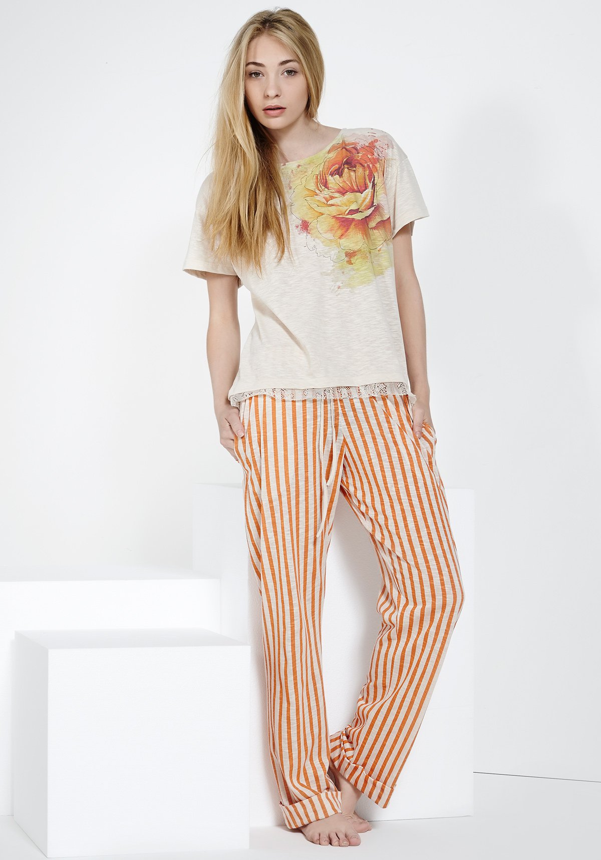 Домашняя одежда с просторными брюками производства Италия. Состав 50% хлопок + 30% акрил + 20% полиэстер + 100% хлопок.