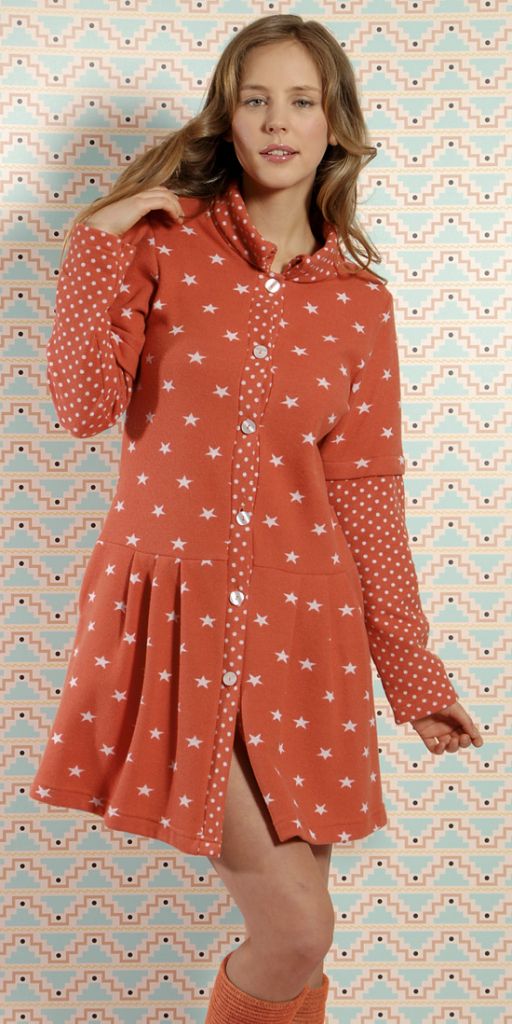Яркий халат для дома с рисунком “звездочки” производства Италия. Состав 50% хлопок + 50% полиэстер + 50% хлопок + 50% полиэстер.