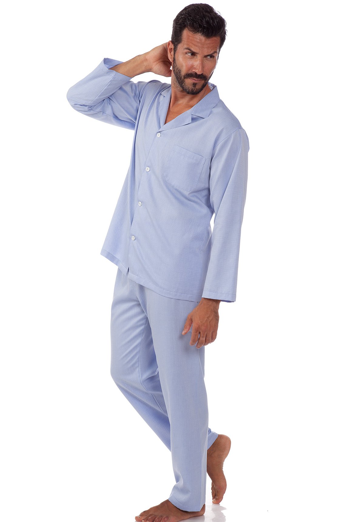 Классическая мужская пижама на пуговицах в голубых тонах производства Италия. Состав 100% хлопок.