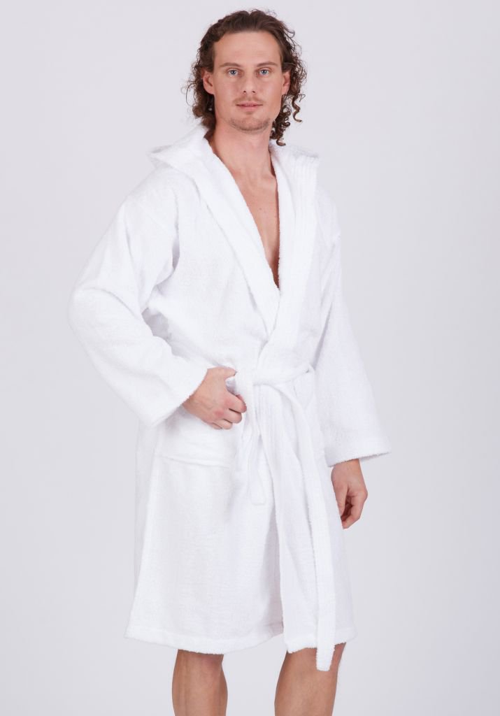 Классический мужской махровый халат, белый производства Италия. Состав 100% хлопок.