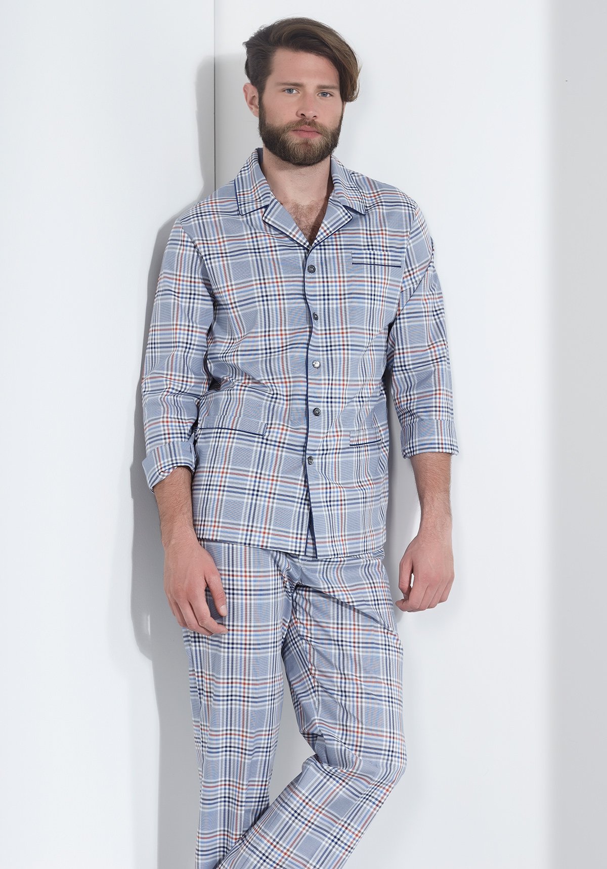 Клетчатая мужская пижама на пуговицах производства Италия. Состав 100% хлопок.