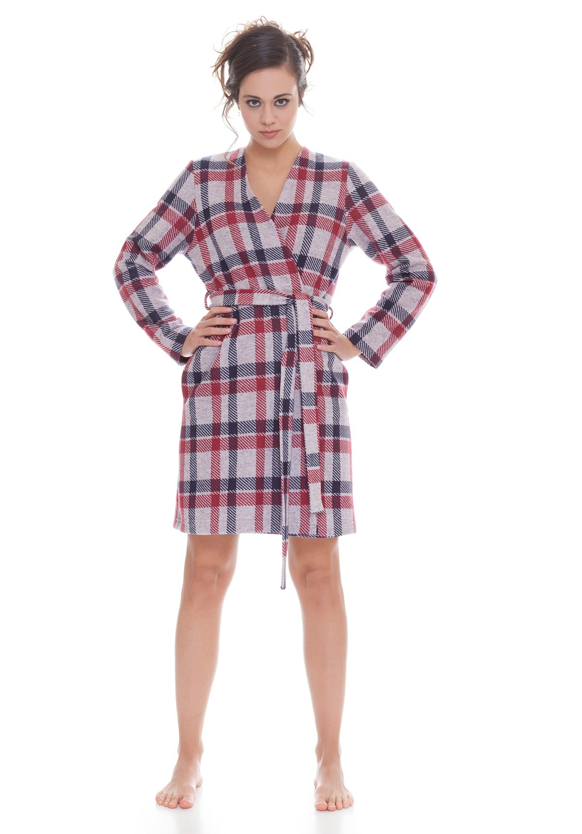 Мягкий молодежный халат в клетку производства Италия. Состав 70% хлопок + 30% полиэстер.