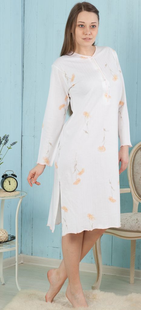 Нежная ночная рубашка с длинным рукавом производства Италия. Состав 100% хлопок.