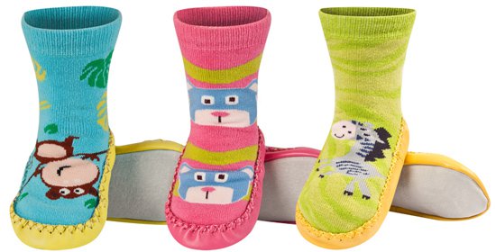 Носки-тапочки для малышей на кожаной подошве. Состав: 80% хлопок + 15% полиамид + 5% эластан. Подошва - натуральная кожа. Производство "Soxo". Длина подошвы в размере 0-12мес. равна 10,5см., в размере 0-24мес. 12,5см.