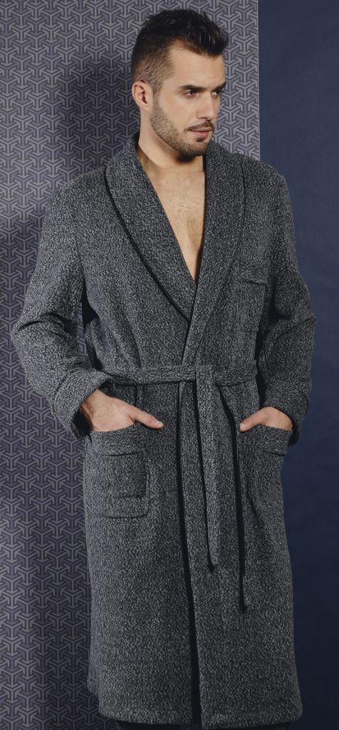 Темный мужской халат производства Италия. Состав 50% хлопок + 50% акрил.