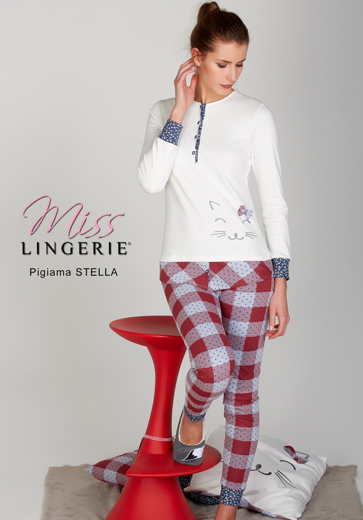 Женская пижама с котиком производства Италия. Состав 100% хлопок.