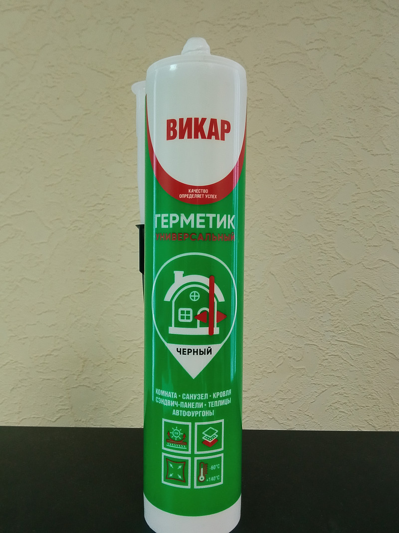 Герметик универсальный. марки ВИКАР для ремонтных и строительных работ премиум-класса. Предназначен для эластичной долговременной герметизации стыков и соединительных швов в конструкциях из металла, дерева, пластика, бетона и пр. Может применяться как снаружи, так и внутри помещения. Подходит для склейки кровельных материалов (кровли). Примеры использования: герметизация светопрочных конструкций, кровли, сэндвич-панелей, стен, потолков, теплиц, герметизация автофургонов, защита сварных швов и элементов кузова от коррозии и др.
