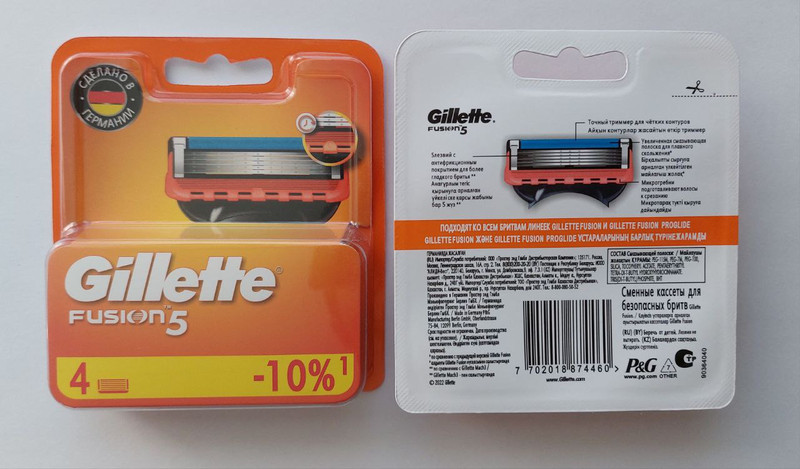 Чтобы купить Сменные кассеты Gillette Fusion 5 оптом по цене 510 руб., свяжитесь с поставщиком. Компания поставщик — Премиум Плюс (ООО «БТЦ») из города Москва. Минимальная сумма оптового заказа: 8000 руб. Минимальная партия 30 шт. Доставка возможна самовывоз, транспортной компанией, автомобилем, авиатранспортом, железной дорогой, курьером. Способы оплаты: наличными, безналичная оплата, кредитные карты, электронные деньги.