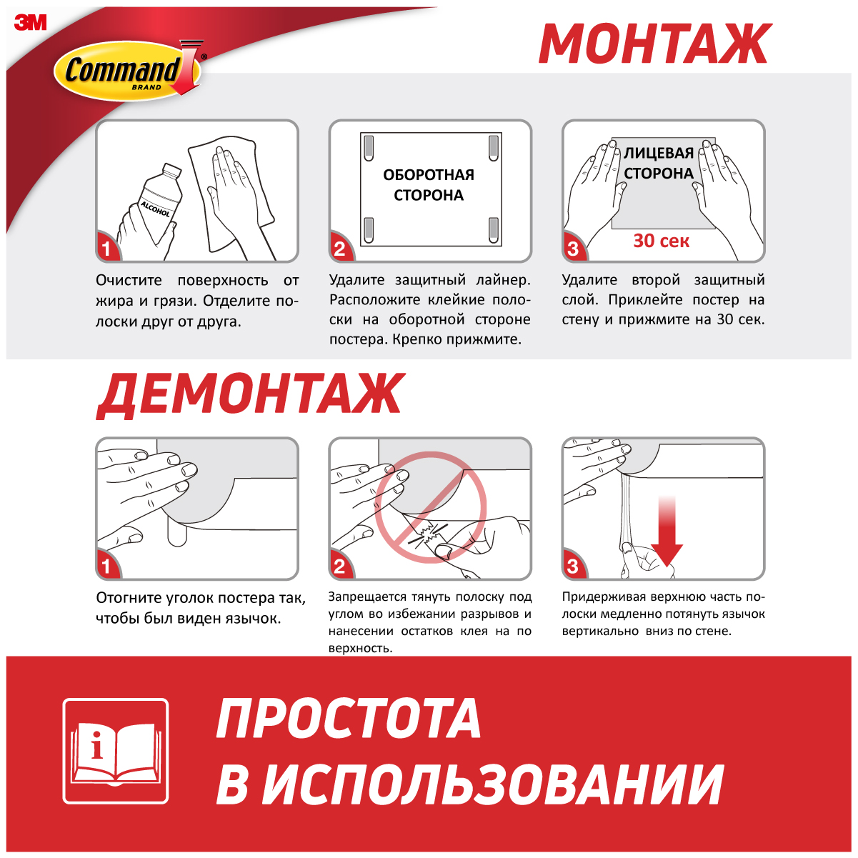 Специально разработанные клейкие полоски предназначены для крепления настенных плакатов и постеров, прекрасно выдерживают нагрузку и, при необходимости, бесследно удаляются, не повреждя ни стен, ни плакатов.