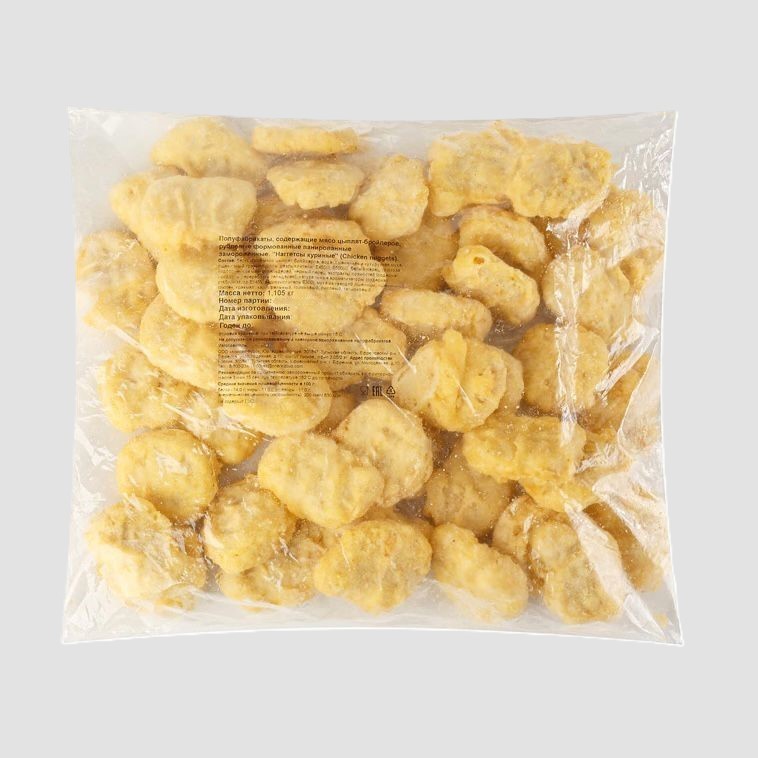 В наличии также куриные стрипсы и бургерные котлеты.