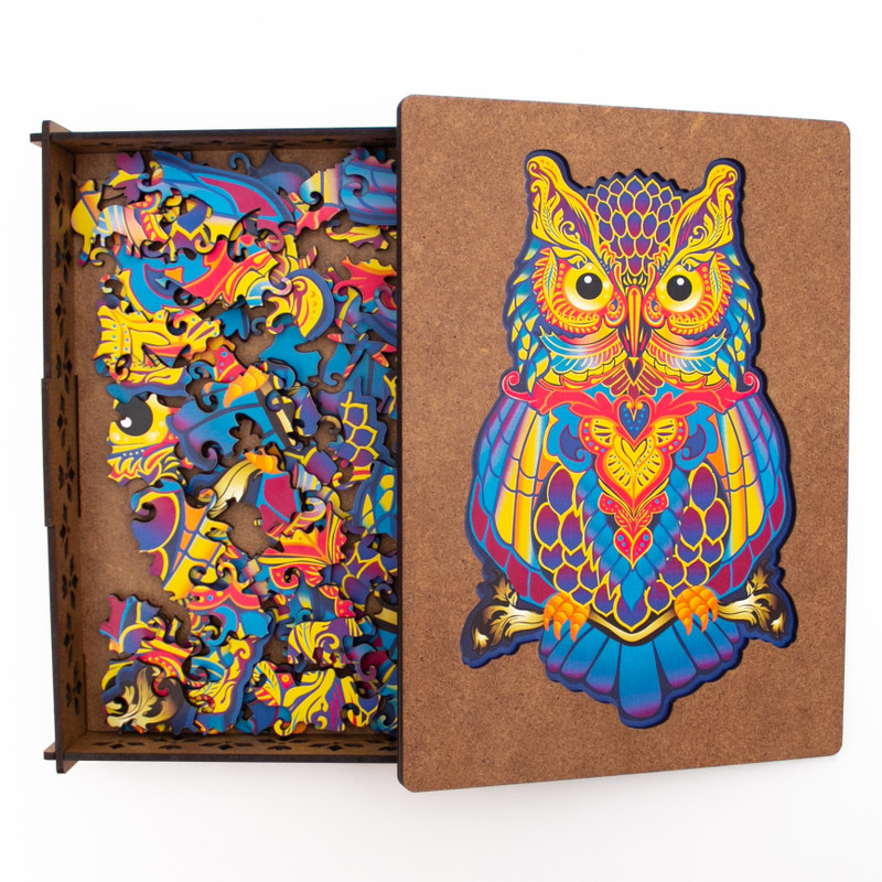 Фигурный пазл “Сова”. Игрушка изготовлена из дерева — экологически чистого и гипоаллергенного материала. Предназначен для детей от 3 лет.
