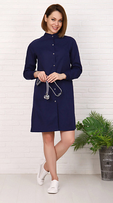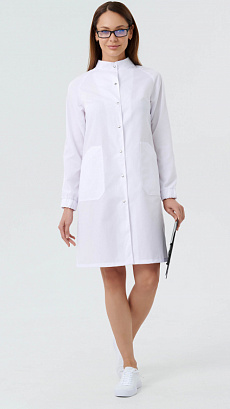 Халат медицинский женский полуприлегающего силуэта с центральной бортовой застежкой на 7 кнопок.