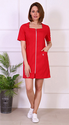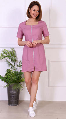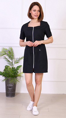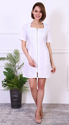 Халат медицинский женский прилегающего силуэта с центральной бортовой застёжкой на тесьму-молнию.